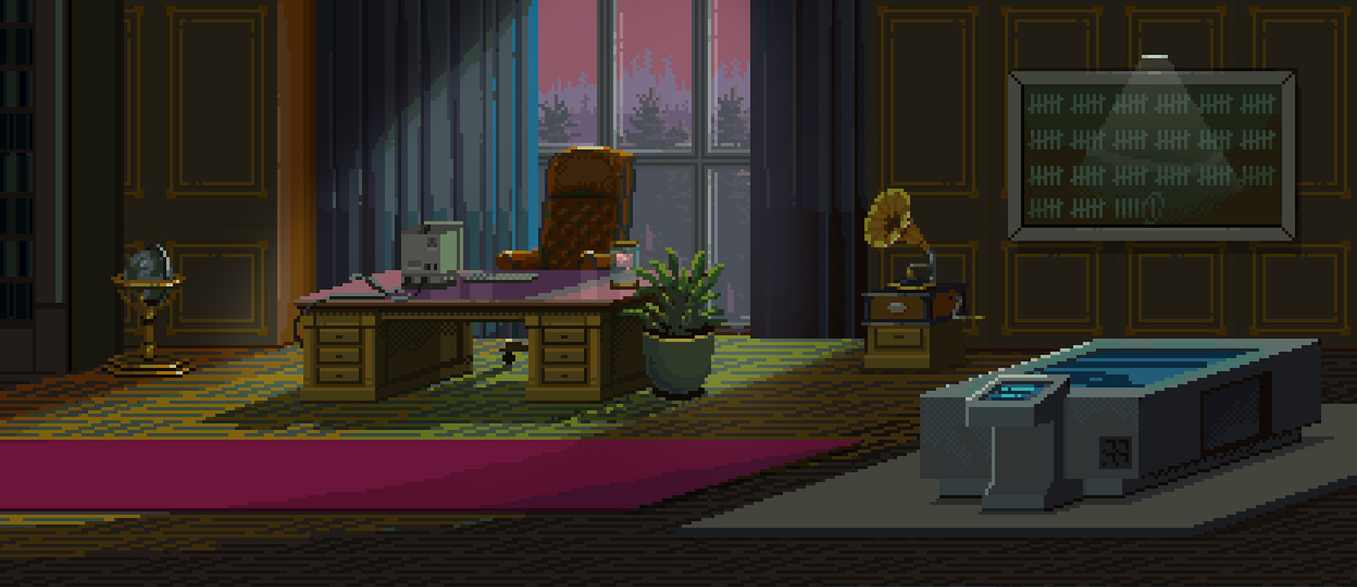 Various in-game location backgrounds. City, outskirts, manor and it's interior